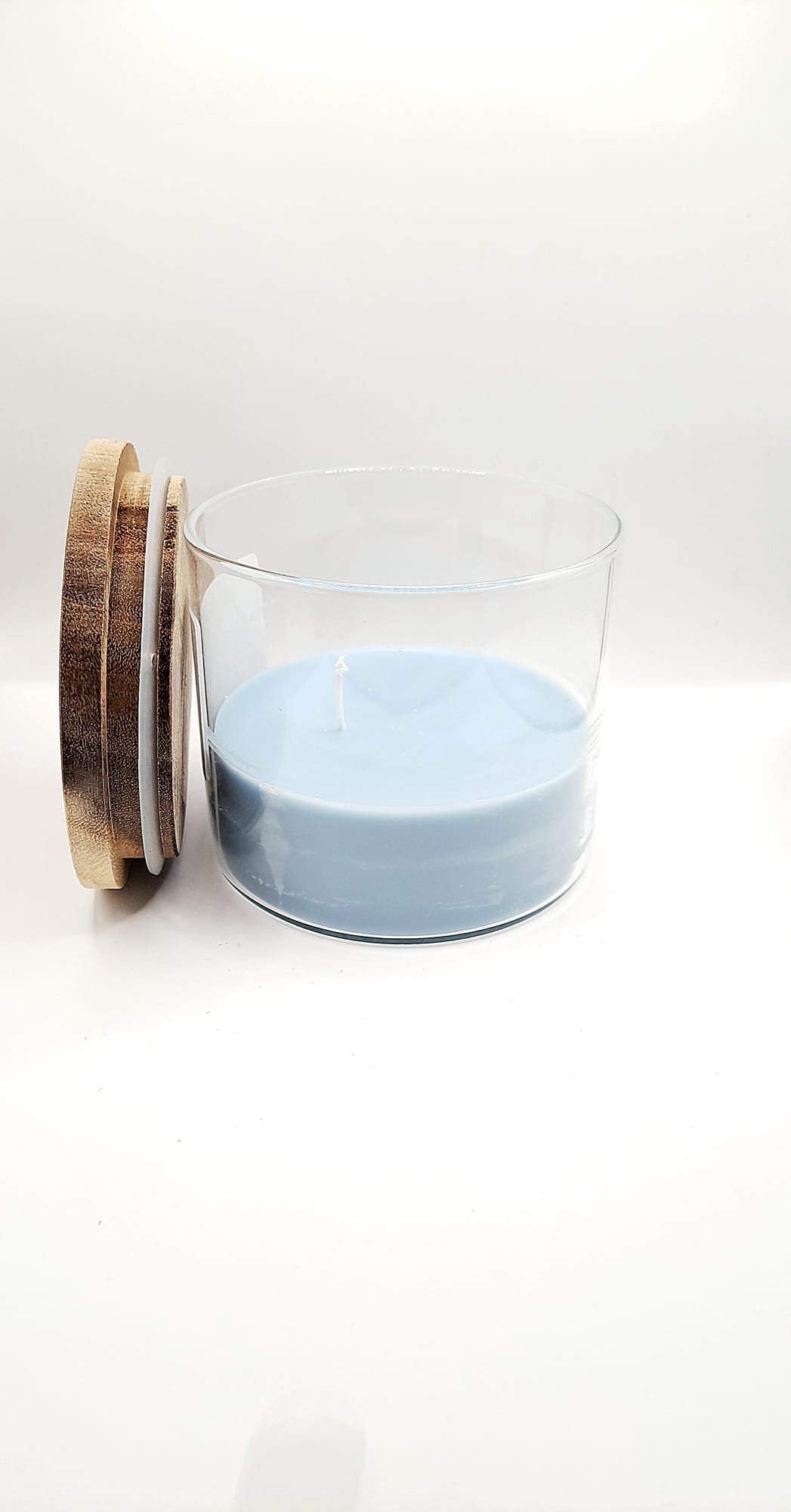 koolzaadwas, glazen pot met houten deksel.